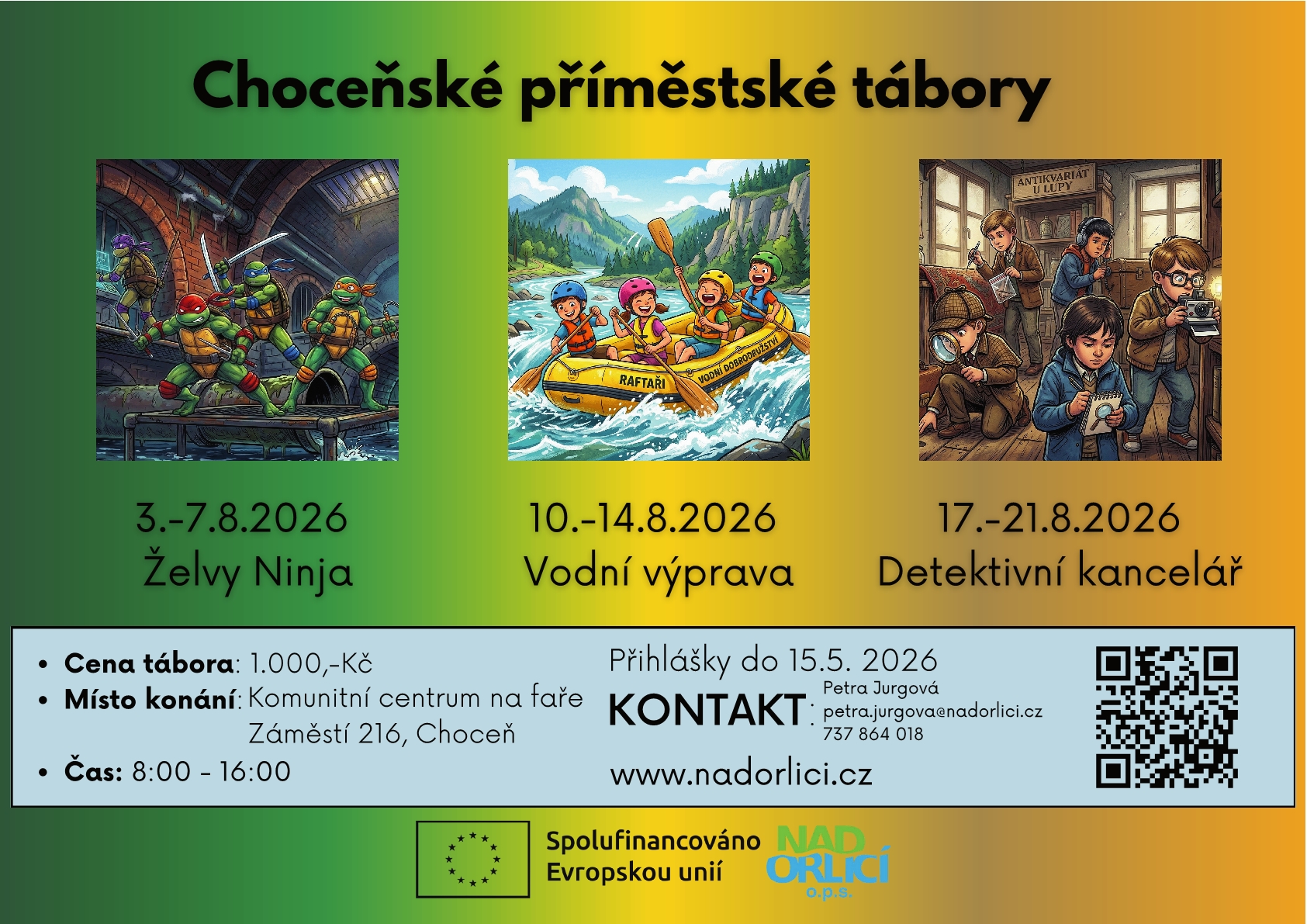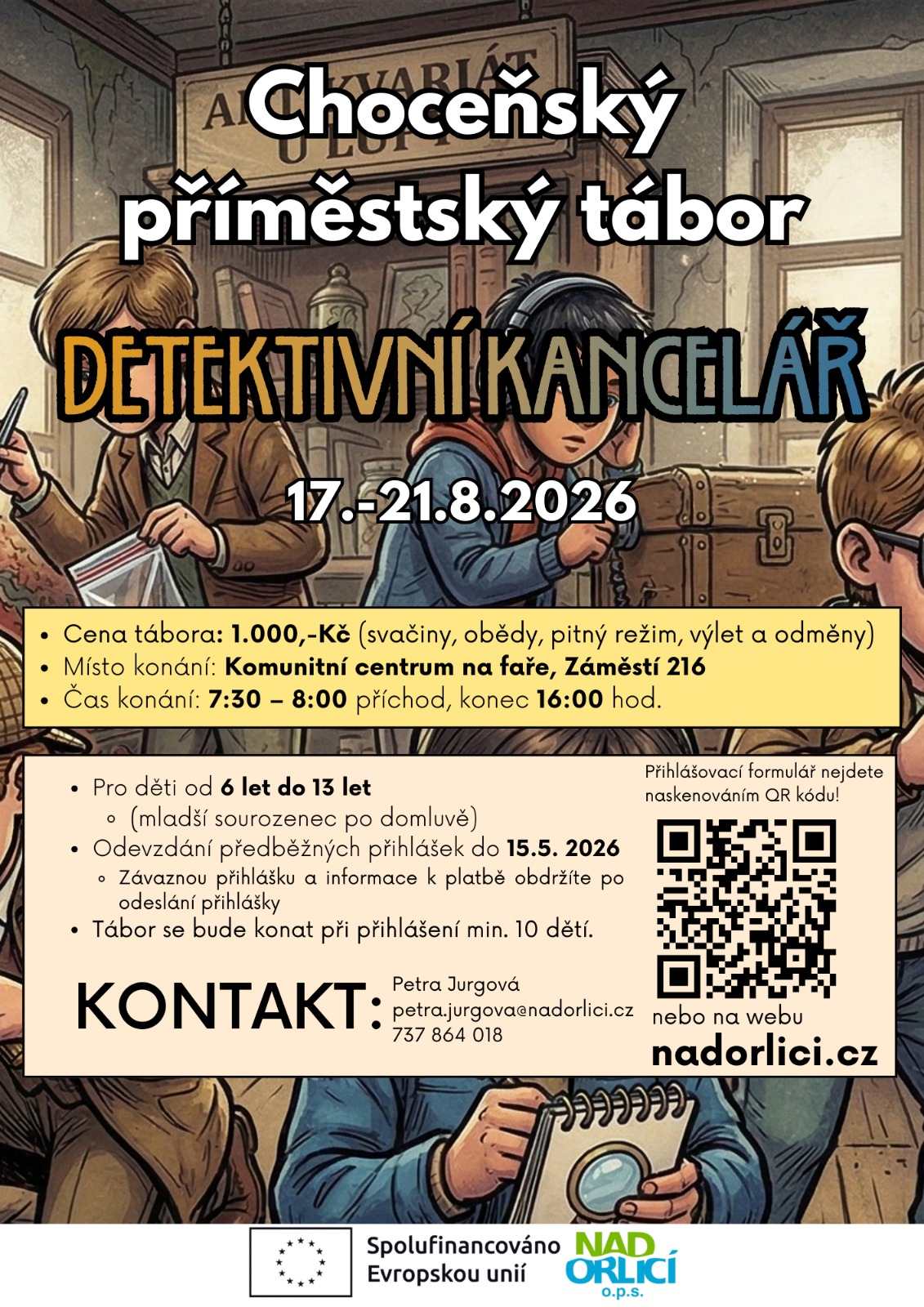 NAD ORLICÍ, o.p.s. bude letos pořádat příměstské tábory pro Choceň a okolí.